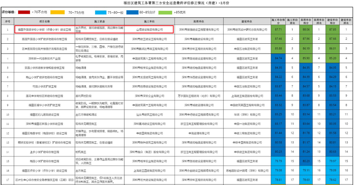 近日,在深圳市福田區(qū)建筑工務(wù)署組織的第三方安全巡查評(píng)估中,山河建設(shè)集團(tuán)深圳公司承建的福田區(qū)外國(guó)語(yǔ)學(xué)校小學(xué)部項(xiàng)目綜合評(píng)分名列第一。