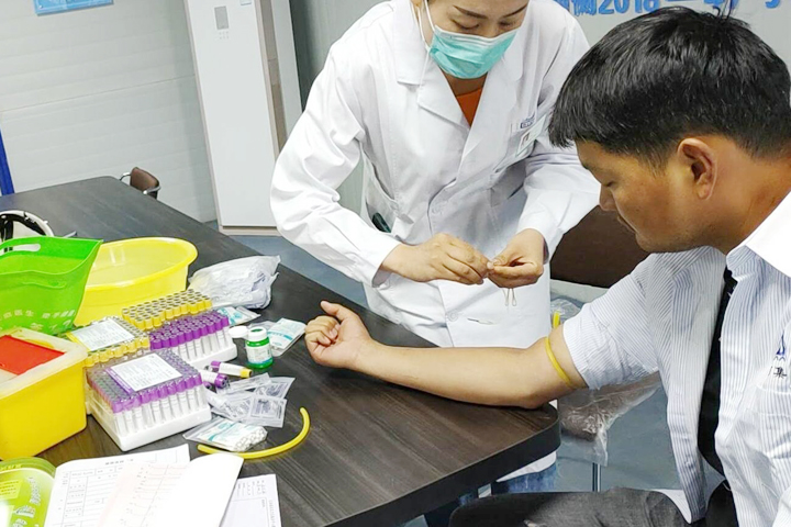 項(xiàng)目部邀請大廟街道社區(qū)衛(wèi)生服務(wù)中心醫(yī)護(hù)團(tuán)隊(duì)來到工地,為農(nóng)民工進(jìn)行包括外科、血常規(guī)、心電圖、胸片、肝功能等10余個(gè)項(xiàng)目的檢查,費(fèi)用由項(xiàng)目部承擔(dān)。大家有序領(lǐng)取體檢表格后,在醫(yī)護(hù)人員的引導(dǎo)下逐項(xiàng)進(jìn)行檢查。檢查過程中,醫(yī)生還對他們的一些健康問題作了解答。