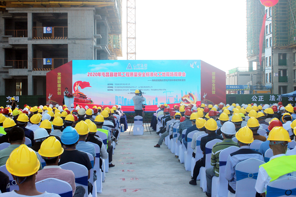 11月13日上午,山河建設(shè)集團(tuán)海南公司屯昌“林溪緣”華龍府項(xiàng)目施工現(xiàn)場(chǎng)熱鬧非凡,2020年屯昌縣建筑工程質(zhì)量安全標(biāo)準(zhǔn)化工地現(xiàn)場(chǎng)觀(guān)摩會(huì)在這里隆重舉行。屯昌縣副縣長(zhǎng)陳鵬程,海南省建設(shè)工程質(zhì)量安全監(jiān)督管理局、屯昌縣住建局等單位負(fù)責(zé)人,部分在建項(xiàng)目建設(shè)、施工、監(jiān)理單位代表400余人參加了觀(guān)摩會(huì)。