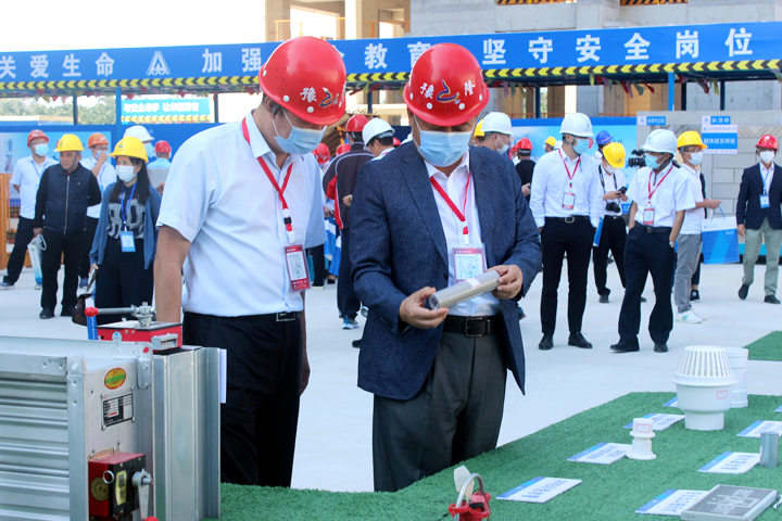 現(xiàn)場(chǎng)質(zhì)量安全觀(guān)摩環(huán)節(jié),與會(huì)代表先后參觀(guān)了VR安全體驗(yàn)館、工法樣板、主體結(jié)構(gòu)樣板、屋面樣板、抹灰樣板間等多個(gè)展區(qū),對(duì)現(xiàn)場(chǎng)工藝做法進(jìn)行了互動(dòng)交流。在VR安全體驗(yàn)館,大家佩戴VR設(shè)備,通過(guò)虛擬的場(chǎng)景模擬體驗(yàn),身臨其境地感受了施工現(xiàn)場(chǎng)的“危險(xiǎn)時(shí)刻”。