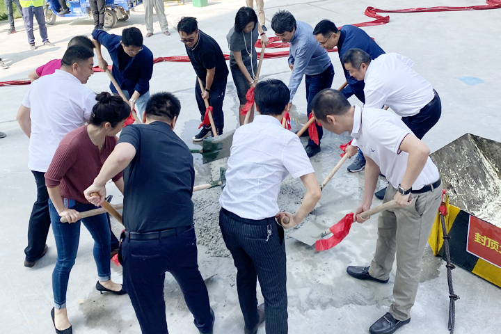 儀式上,各方代表共同揮動鐵鍬,完成最后一方混凝土澆筑,標(biāo)志著該項(xiàng)目主體工程正式封頂,為下一階段的施工打下良好基礎(chǔ)。