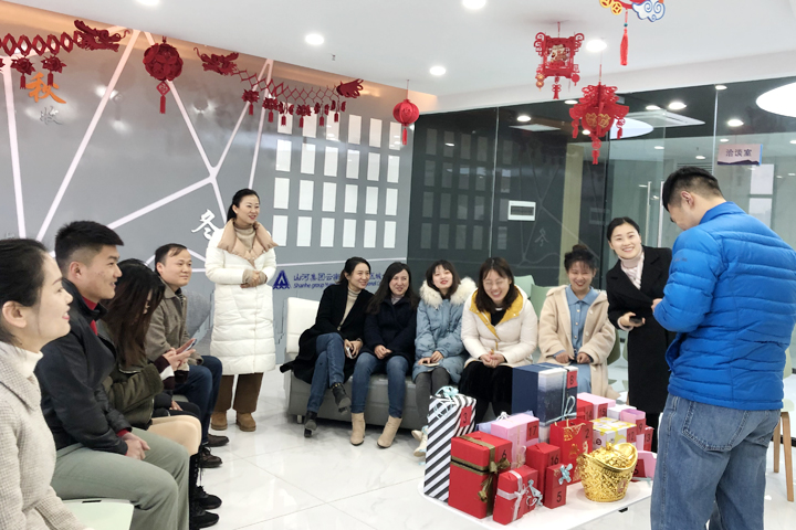 在陣陣歡笑聲中,跨年活動(dòng)在員工風(fēng)采展示區(qū)拉開(kāi)序幕,活動(dòng)的“重頭戲”——交換禮物隨之開(kāi)始。大家事先準(zhǔn)備好的精美禮物整整齊齊地碼在桌子上,并一一編上號(hào)碼。通過(guò)抽獎(jiǎng)的方式,每個(gè)人都收到了屬于自己的一份驚喜。拆開(kāi)禮物的一剎那,發(fā)自?xún)?nèi)心的喜歡溢于言表。參加活動(dòng)的員工紛紛表示,這是來(lái)自同事的真心祝福,寓意深刻,是最難忘的一份禮物。