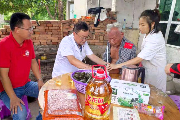 活動(dòng)中,海南省湖北商會(huì)儋州分會(huì)黨支部書記、山河建設(shè)集團(tuán)海南海花島項(xiàng)目部黨支部書記童學(xué)軍帶隊(duì)走訪了5名黨齡超過50年的老黨員、5名生活困難的黨員,為他們送去慰問金及米、油、牛奶、蘄艾眼貼等慰問品,還帶著醫(yī)生上門服務(wù),為他們進(jìn)行了健康體檢。走訪中,黨員、職工和老黨員親切交流,仔細(xì)詢問了他們的生活、身體狀況,叮囑他們要保重身體,安享晚年。